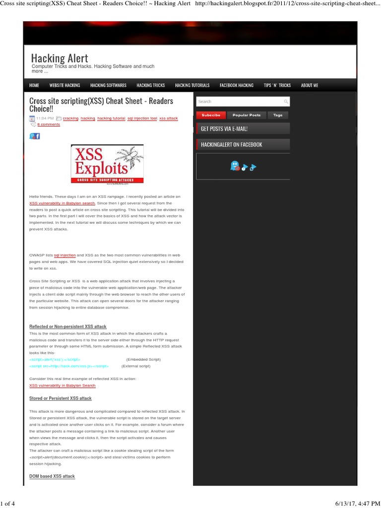 Following the success of 2018 edition it was designed to be a quick reference material to deal with xss related needs for bug hunters penetration testers security analysts web application security. Cross site scripting prevention cheat sheet introduction. In reflected xss an attacker sends the victim a link to the target application through email social media etc this link has a script embedded within it which executes when visiting the target site. Xss filter evasion cheat sheet on the main website for the owasp foundation.